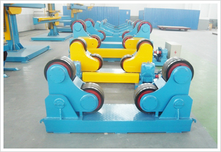 | 自调式焊接滚轮架 | 自调式焊接滚轮架,是利用主动滚轮与焊件之间的摩擦力带动工件旋转的变位设备。可根据工件直径大小自动调节轮组的摆角,并能自动调心。其主要用于管道、容器、锅炉、油罐等圆筒形工件的装配或焊接,当与焊接操作机、焊接电源配套时,可以实现工件的内外纵缝和内外环缝焊接。本产品充分吸取了国内外同类产品的优点,具有工艺、质量可靠、操作简单、传动噪声低、工件回转平稳等优点。是实现压力容器及筒状工件焊接自动化、半自动化的必备设备。自调式滚轮架滚轮驱动采用电磁调速电动机,可按焊接规范进行无极调速,具有焊接速度调速范围宽、转动平滑性好、低速特性硬等特点。当对主、从动滚轮的高度作适当的调整后,也可进行锥体、分段不等径回转体的装配与焊接。对于一些非圆长形焊件,若将其卡在特制的环形卡箍内,也可在焊接滚轮架上进行装焊作业。特别是自调式、可调式焊接滚轮架系列产品对滚轮转速的选择,采用了独特的数字调节和显示技术,不但焊接速度的设定十分直观、准确,也减小了工人的操作难度。 |