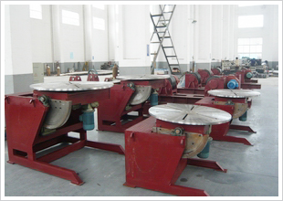 | 座式焊接变位机 | 座式焊接变位机适用于各种轴类、盘类、筒体等回转工件的焊接。工作台面采用铸件精加工而成,不易受焊接飞溅的损伤,台面上刻有间隔分布均匀的定位线,并设有若干T型槽,可方便安装各种定位和夹紧机构,工作台回转采用变频器无级调速,具有调速范围宽,运行平稳等特点。工作台翻转采用蜗杆减速器传动,在120°范围内恒速翻转,翻转力矩大,自锁功能强,定位可靠。机体采用座式结构,设备整体稳定性好,一般不用固定在地基上。采用手控盒远程控制,操作方便灵活,并在电机箱留有联动接口,可与本公司或其他国内外厂家生产的操作机等相关设备控制系统相联,实现联动操作。 |